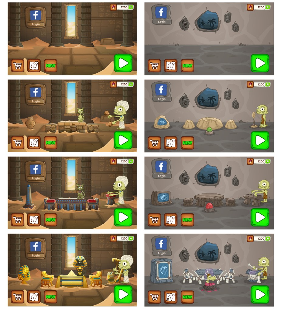 Creating graphics for entire game: (UI, HUD, Icons, 2D and 3D assets, Progression map,